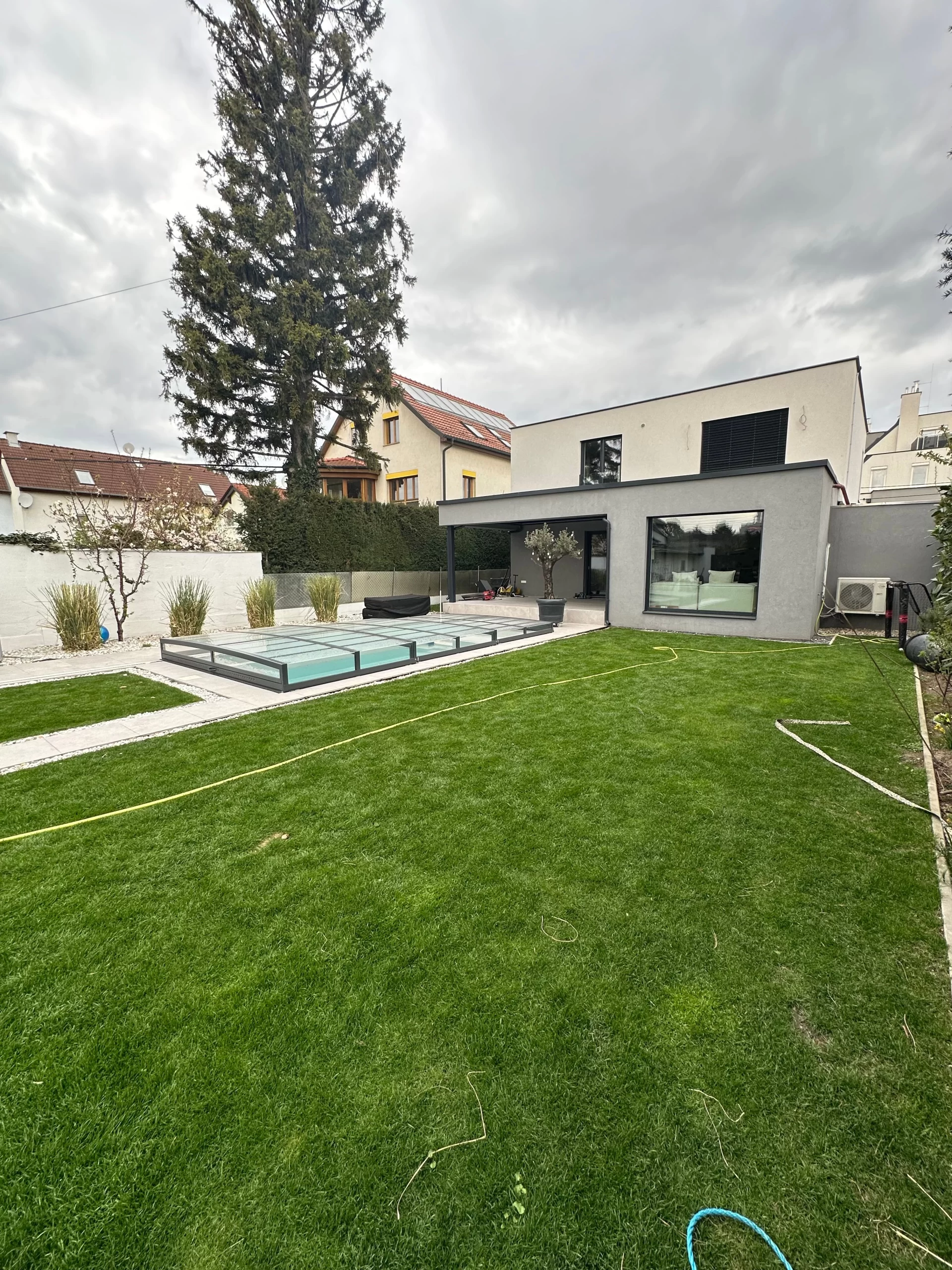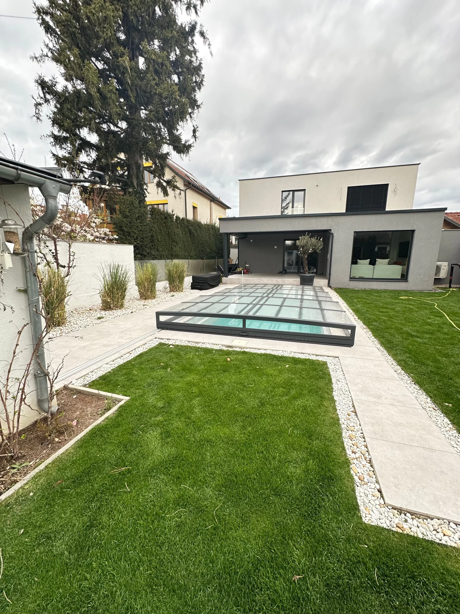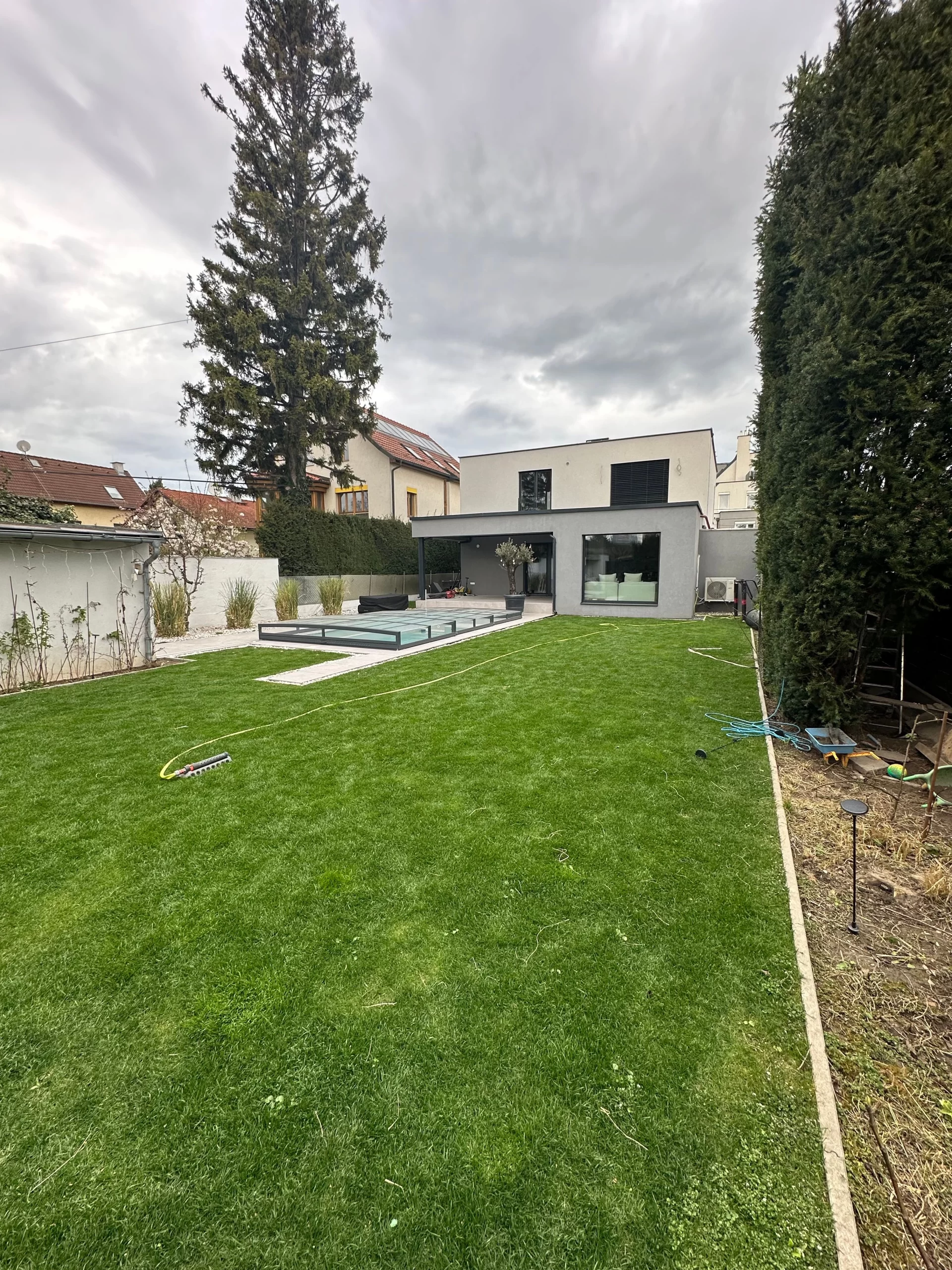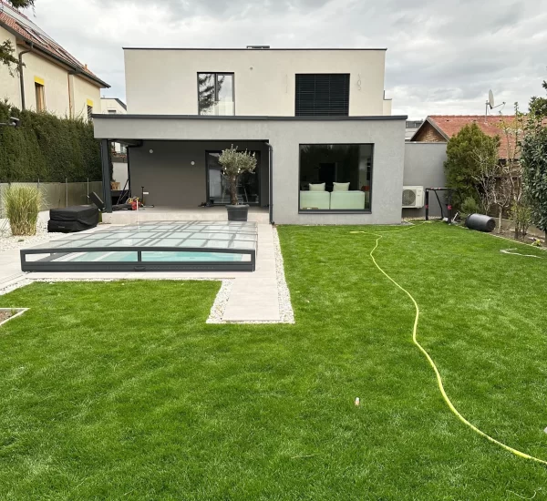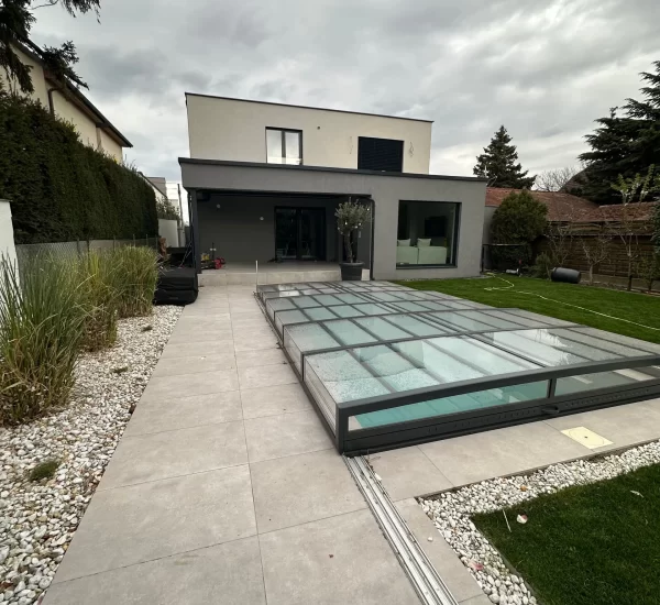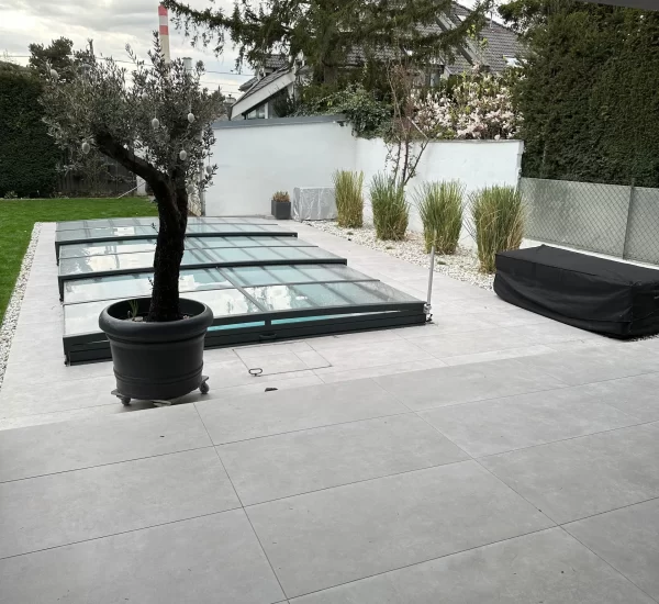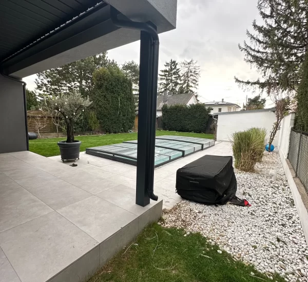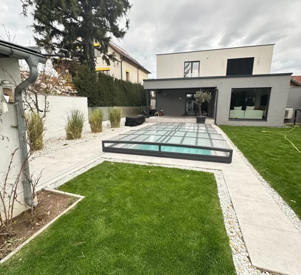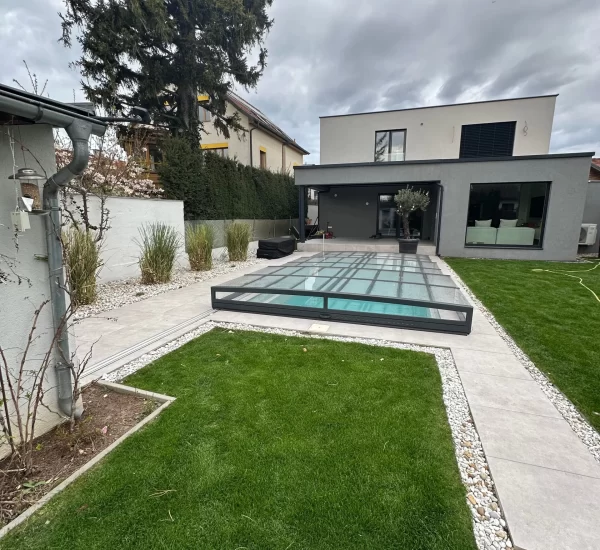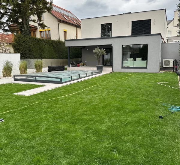 Ein zentrales Highlight bildet die Realisierung eines Pools, der nicht nur als Erfrischung an heißen Tagen dient, sondern auch als gestalterisches Element im Garten fungiert. Die Poolanlage wurde technisch und optisch perfekt integriert, inklusive Filtersystem, Umrandung und Liegebereichen.