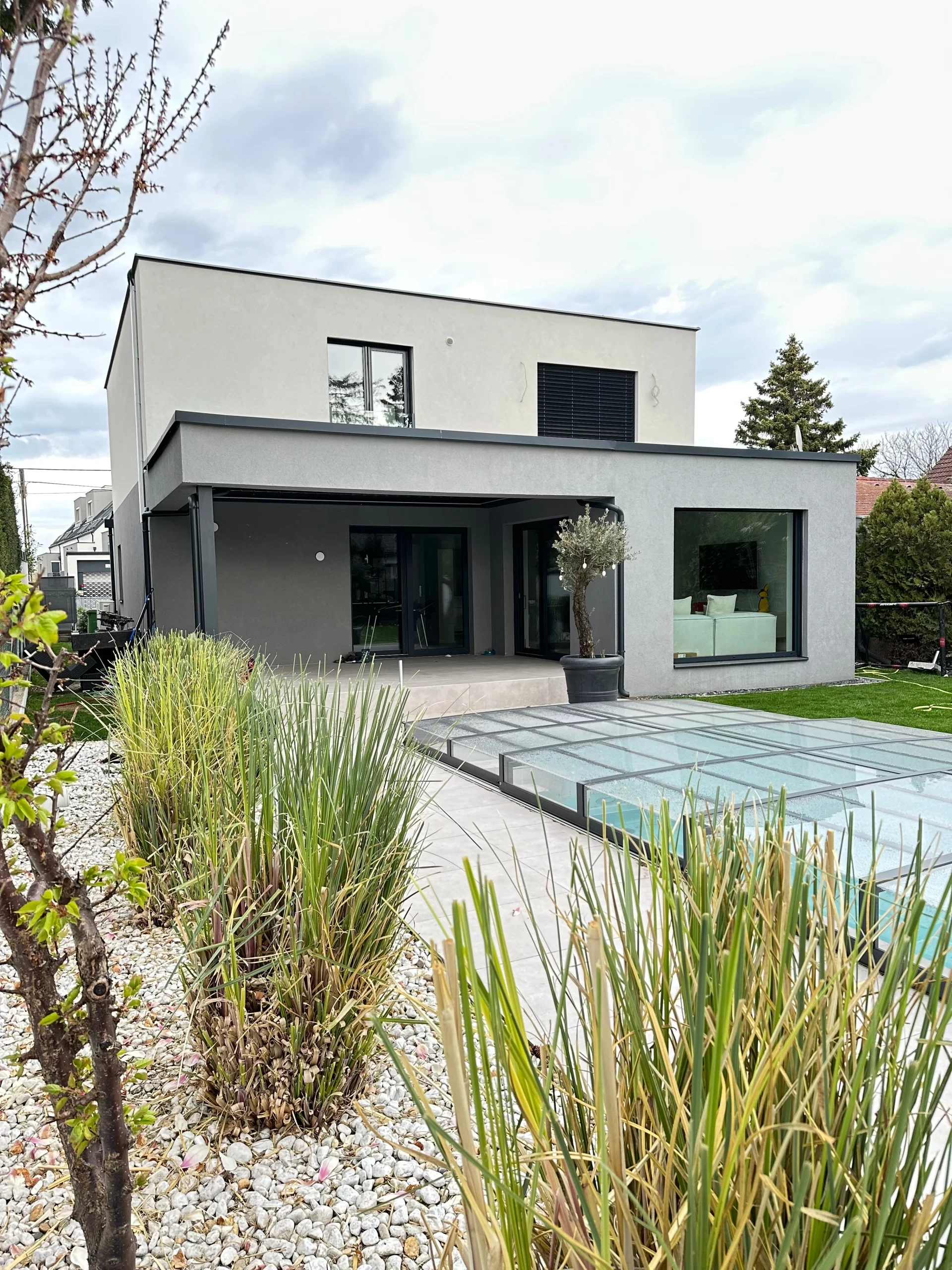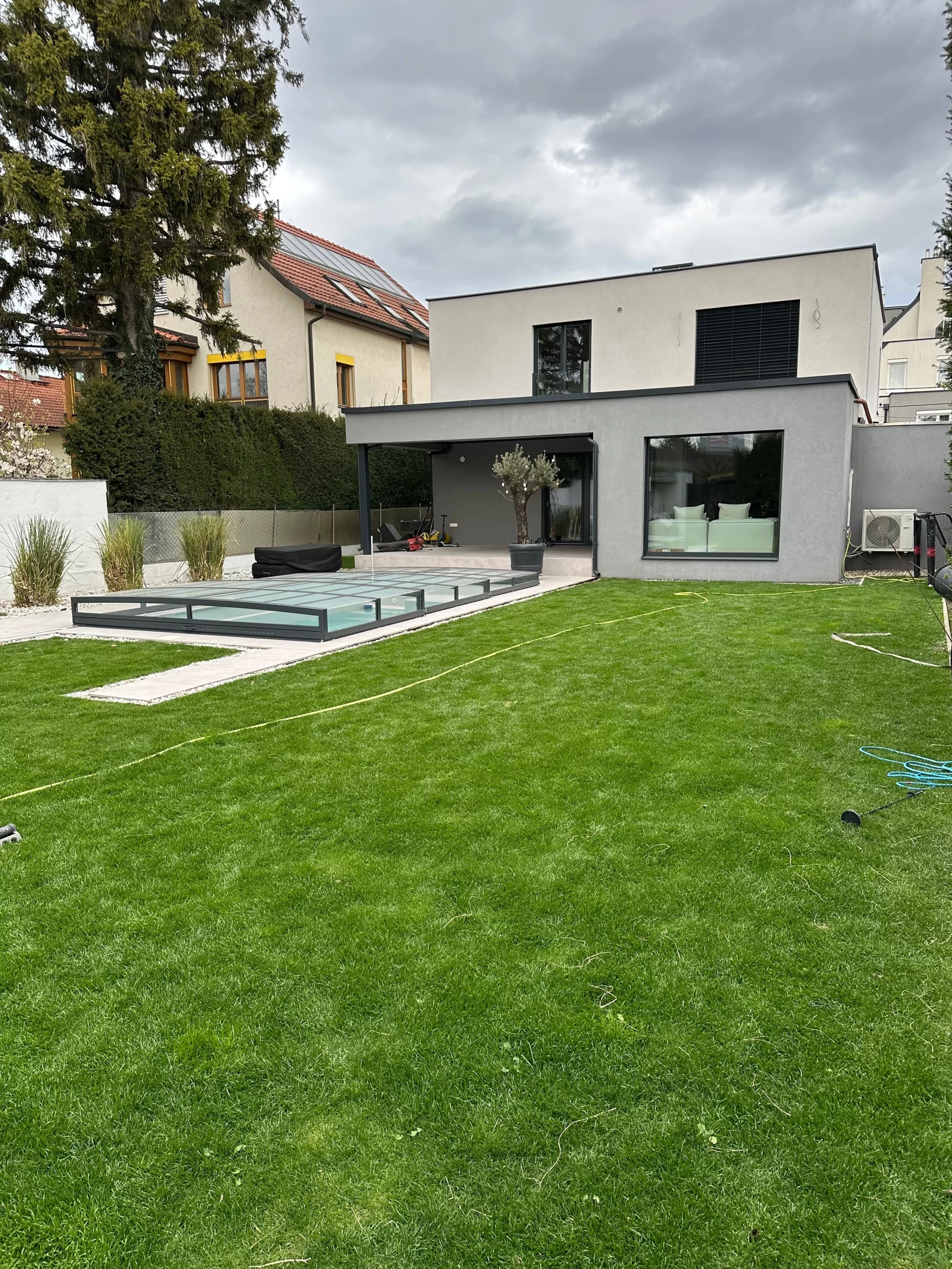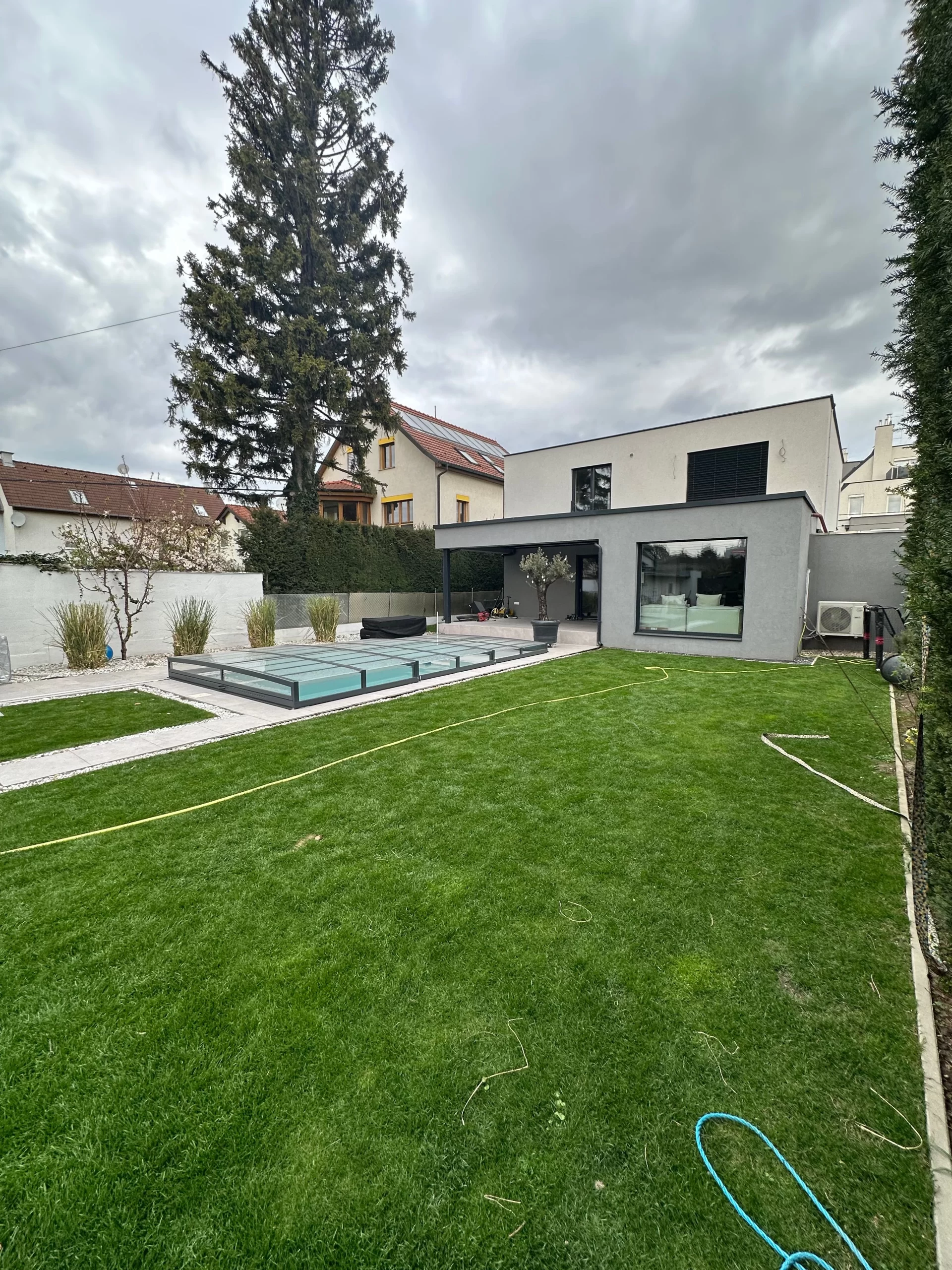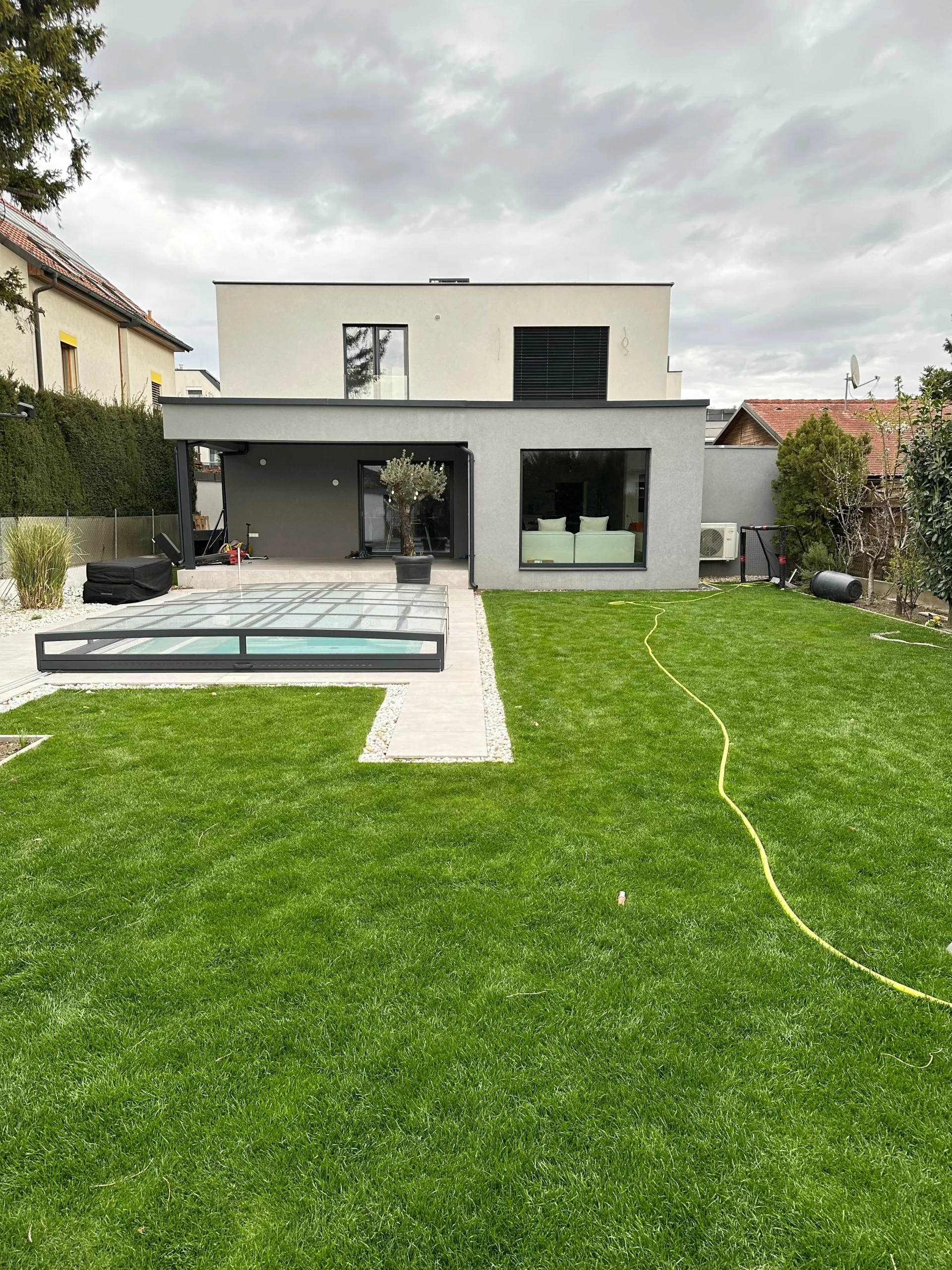 Ein zentrales Highlight bildet die Realisierung eines Pools, der nicht nur als Erfrischung an heißen Tagen dient, sondern auch als gestalterisches Element im Garten fungiert. Die Poolanlage wurde technisch und optisch perfekt integriert, inklusive Filtersystem, Umrandung und Liegebereichen.