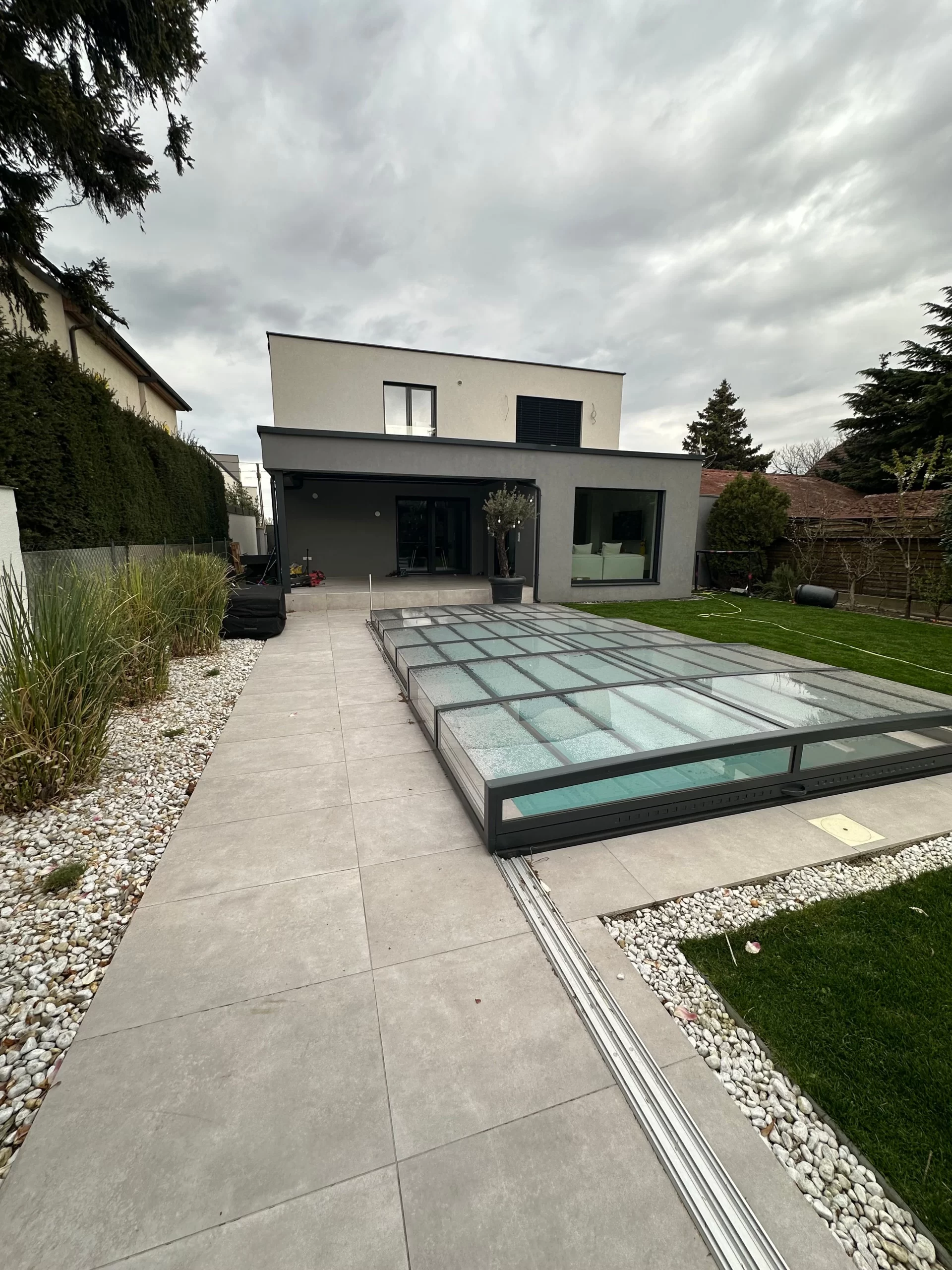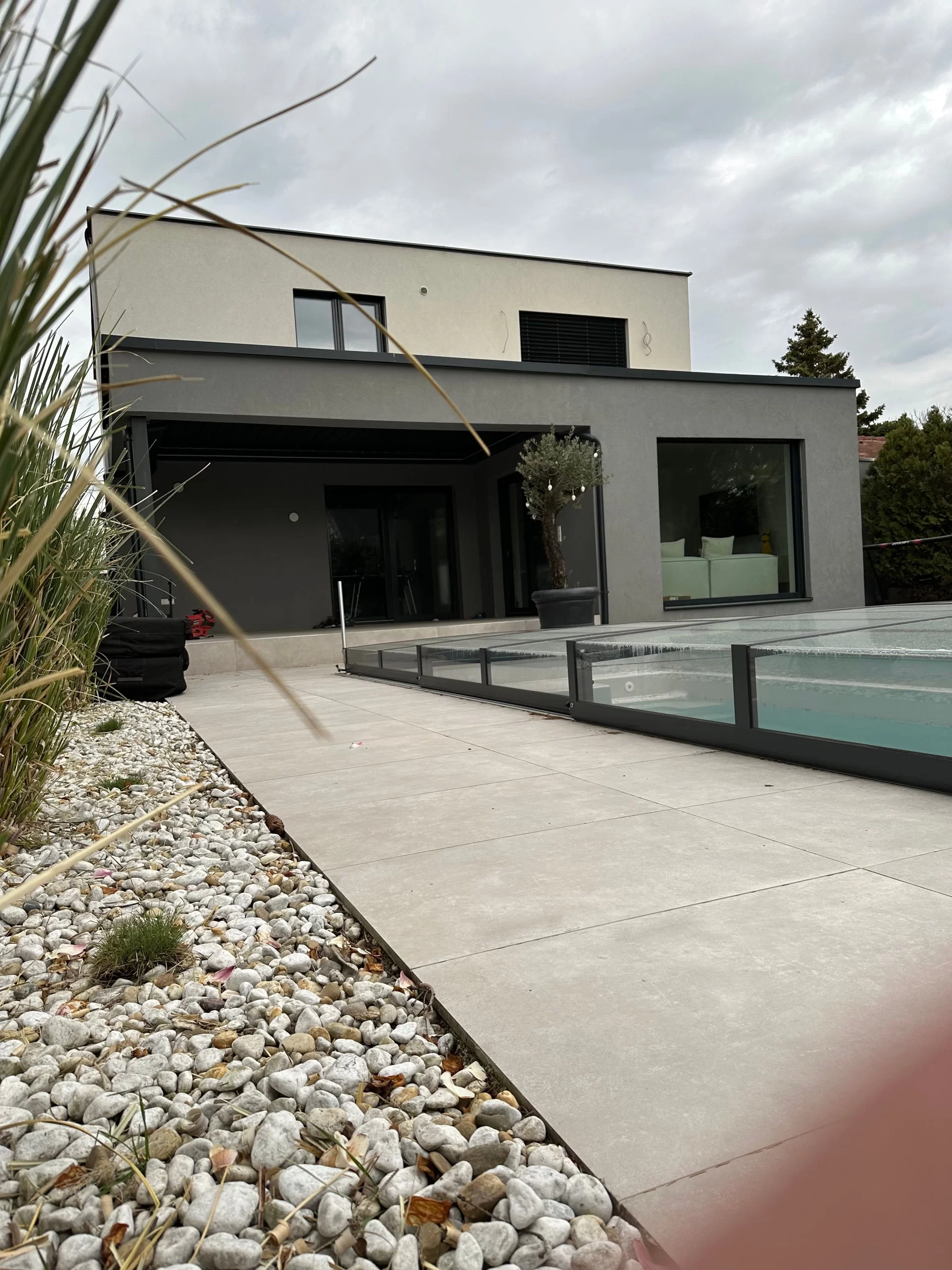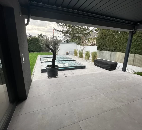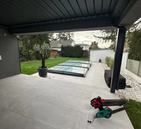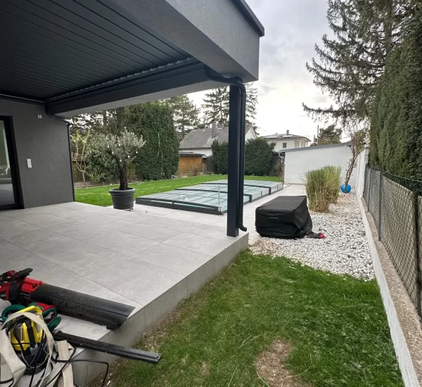 Gestalten der Außenanlage inkl. Belagsarbeiten und herstellen des Pools