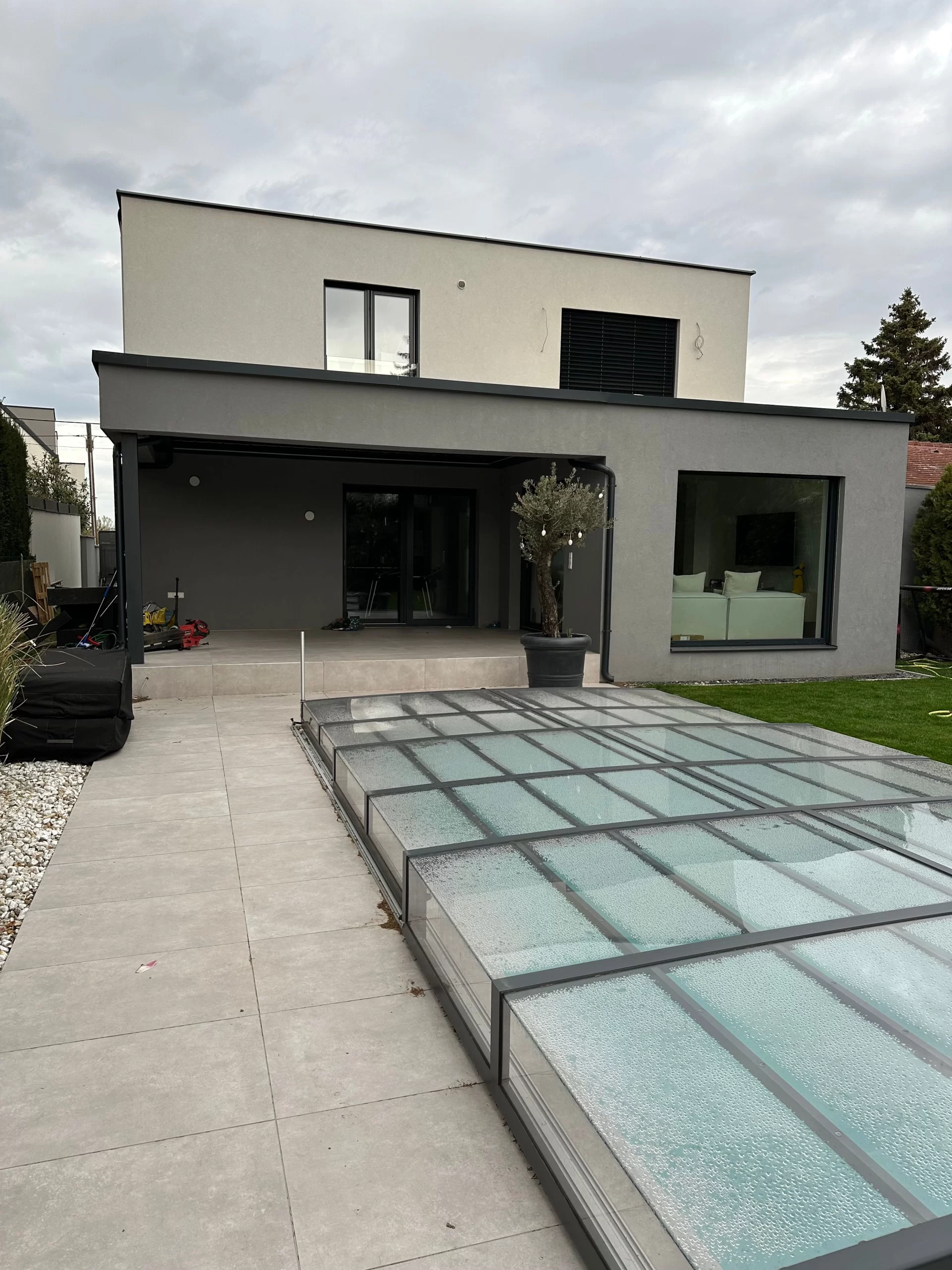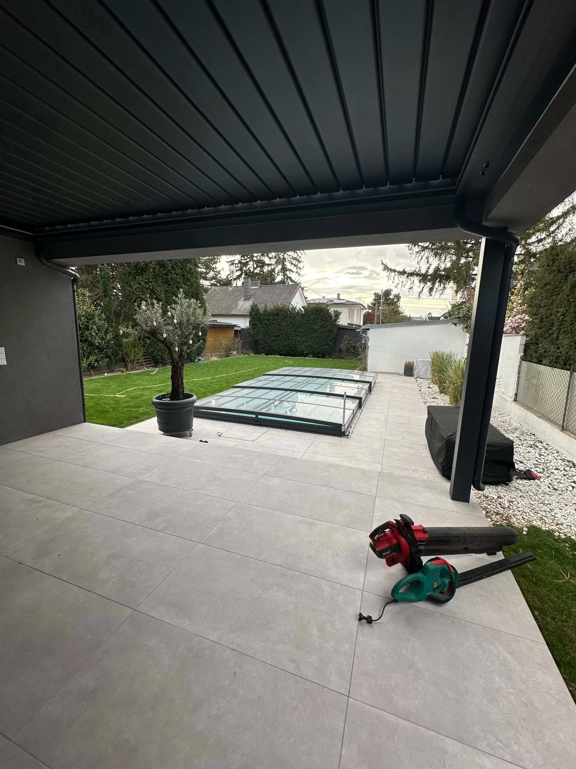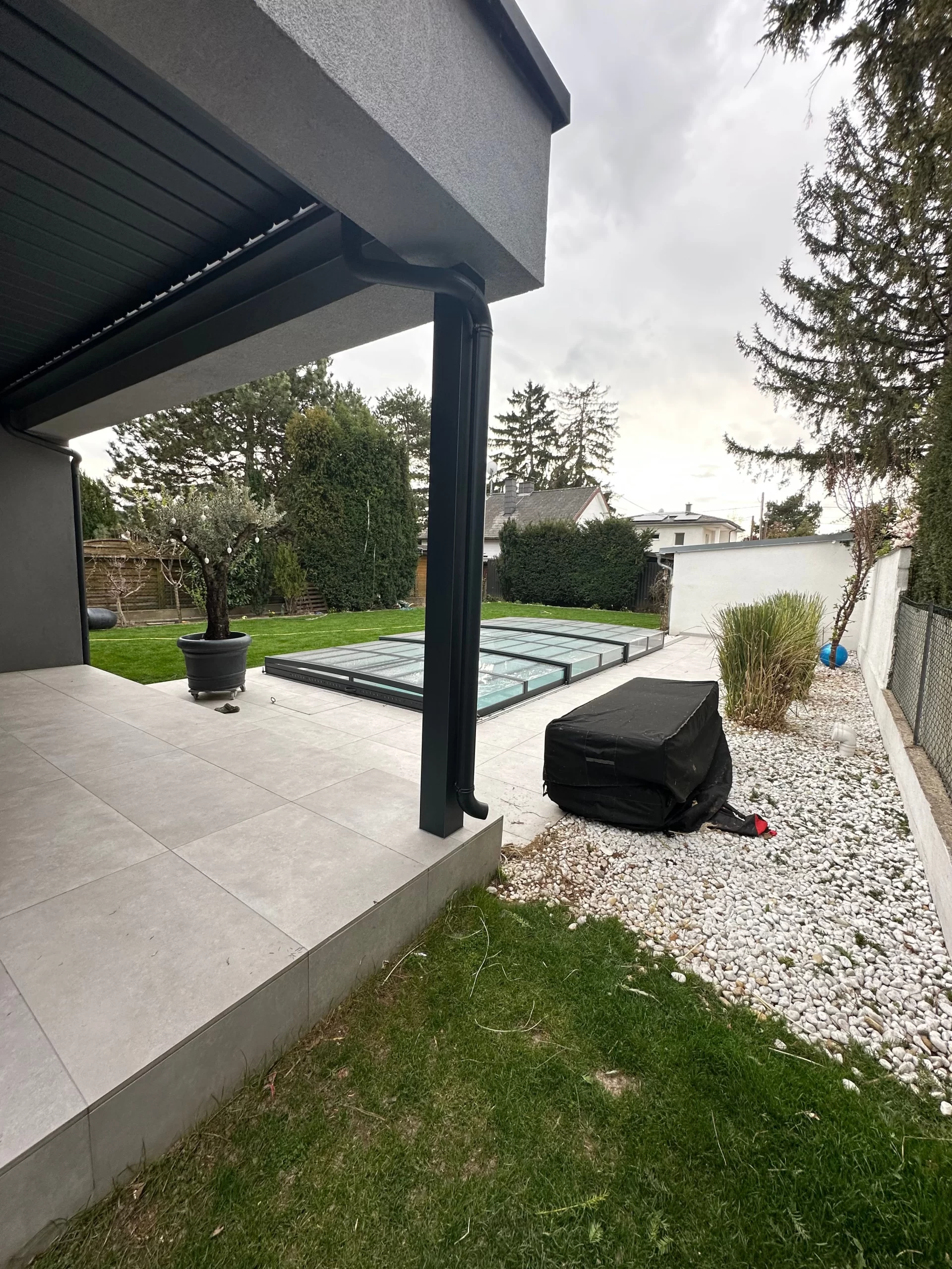 Gestalten der Außenanlage inkl. Belagsarbeiten und herstellen des Pools