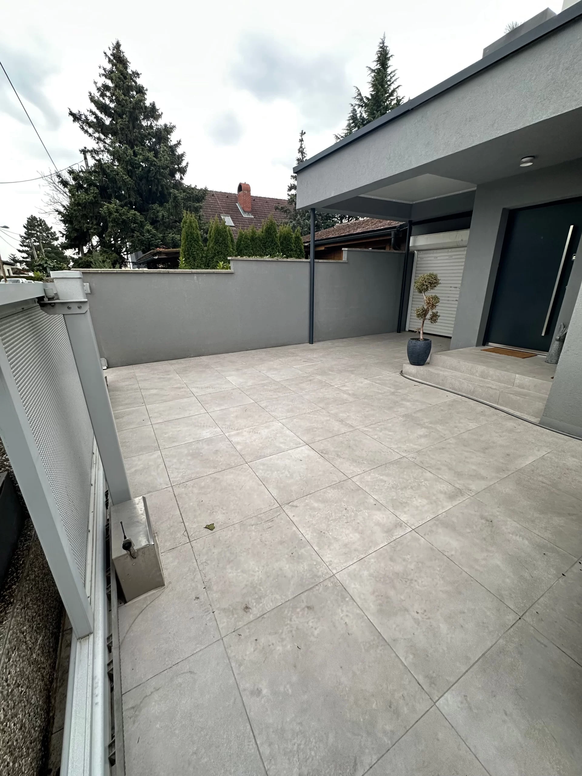 Ergänzend zur baulichen Sanierung wurde die komplette Außenanlage neu gestaltet. Dabei wurde besonderer Wert auf eine harmonische Verbindung von Architektur und Gartenlandschaft gelegt. Hochwertige Belagsarbeiten, Natursteinflächen, moderne Wegeführung und eine durchdachte Bepflanzung ergeben ein stimmiges Gesamtbild.