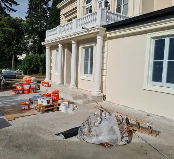 Die stilistische Eigenheit von Villen aus der Jahrhundertwende liegt in ihrer feingliedrigen Architektur: Gesimse, Lisenen, Erker, Stuckelemente und symmetrisch gegliederte Fassaden prägen das Erscheinungsbild. Die Herausforderung bestand darin, diese Merkmale im Rahmen der Sanierung nicht nur zu erhalten, sondern auch in den neu geplanten Zubau architektonisch zu integrieren, ohne dabei die stilistische Balance zu verlieren.