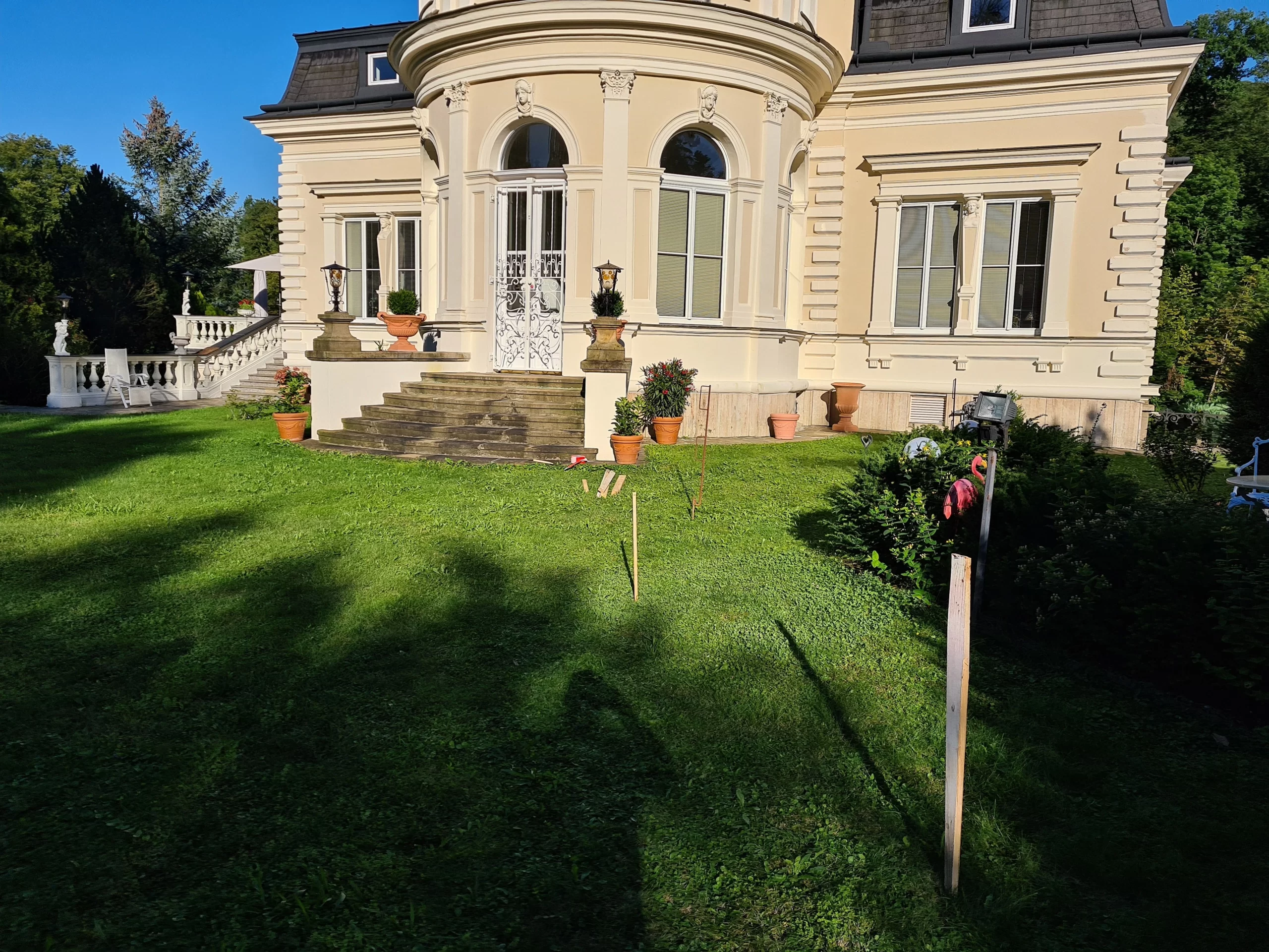 Die Außenanlagen tragen entscheidend zur ästhetischen Wirkung des Gesamtobjekts bei und unterstreichen den exklusiven Charakter der Villa.