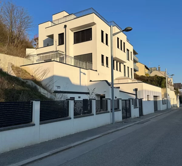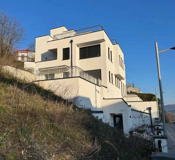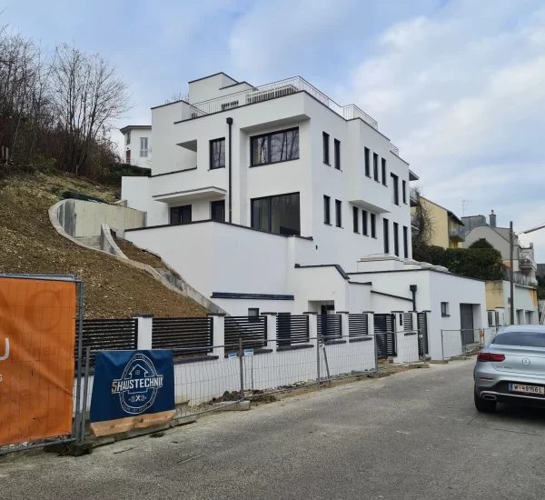In Wien wurde der Neubau eines modernen Mehrfamilienhauses als Niedrigenergiehaus erfolgreich realisiert – und das in einer steilen Hanglage mit komplexen geologischen und logistischen Anforderungen. Das Projekt verbindet anspruchsvolle Architektur mit ökologischer Verantwortung und zukunftsorientierter Technik. Neben der Errichtung des Wohngebäudes wurden auch die Außenanlagen samt Belagsarbeiten professionell gestaltet sowie eine moderne Erdwärmepumpe mit Fußbodenheizung und eine komfortable Aufzugsanlage integriert.