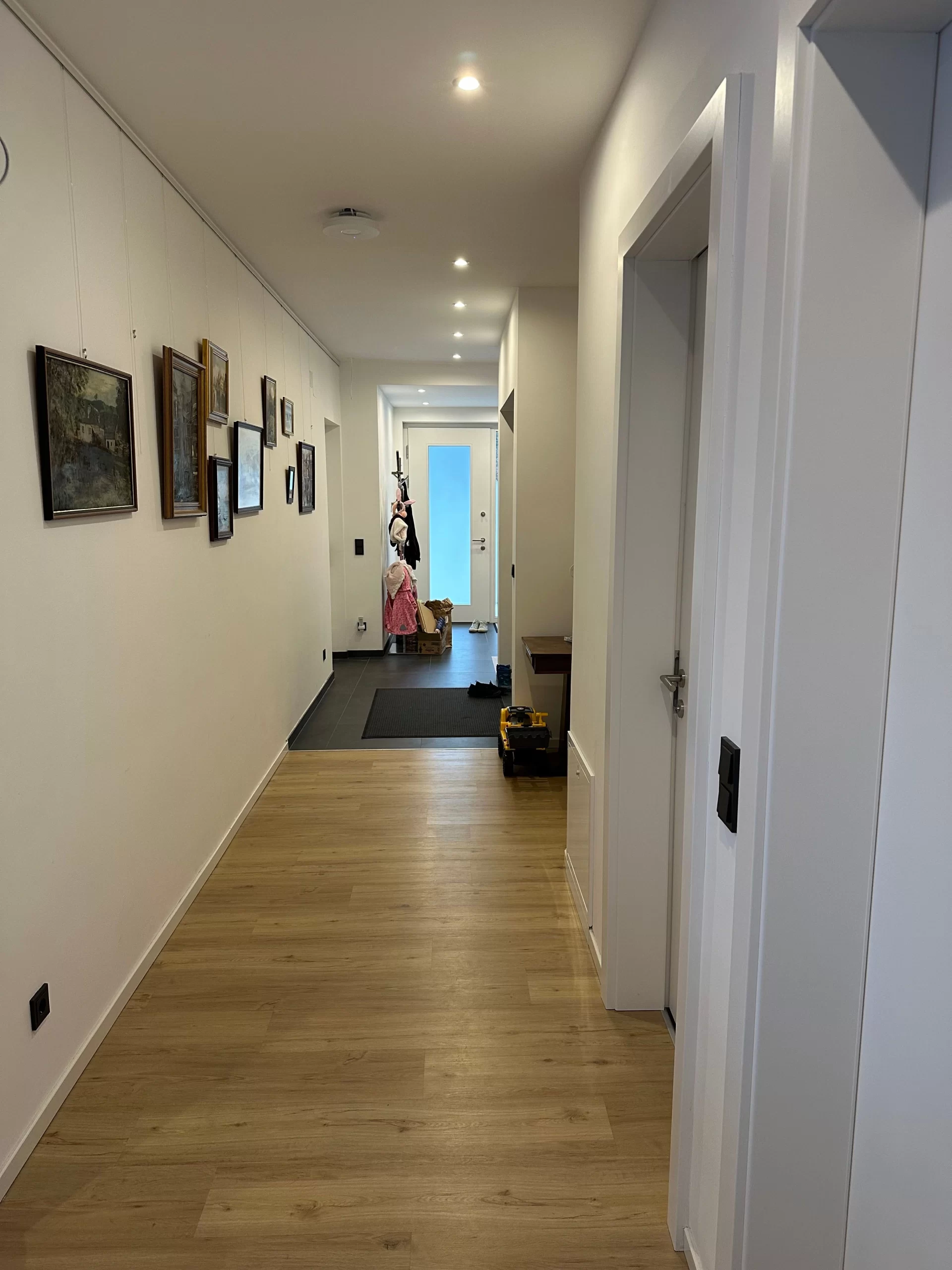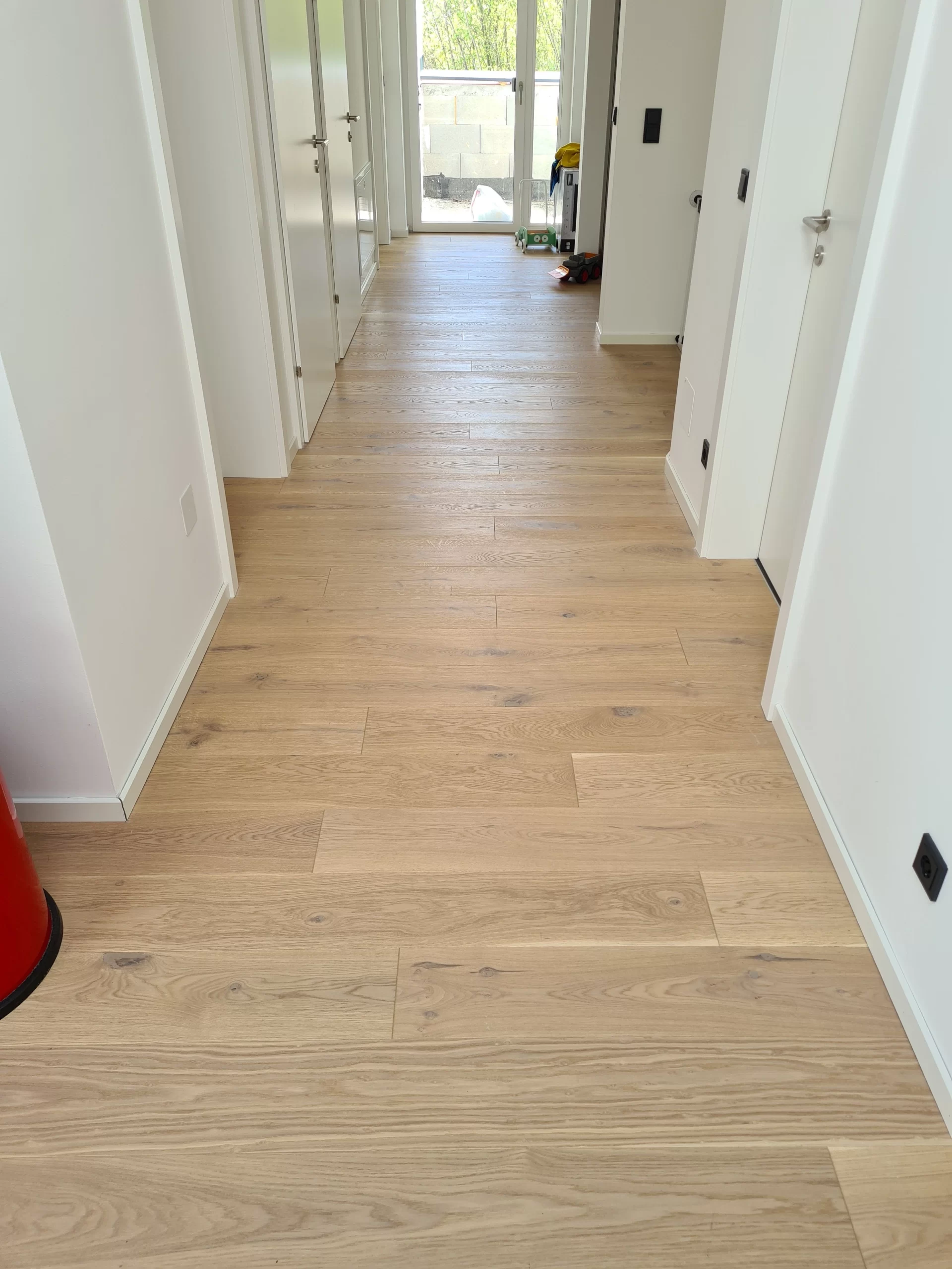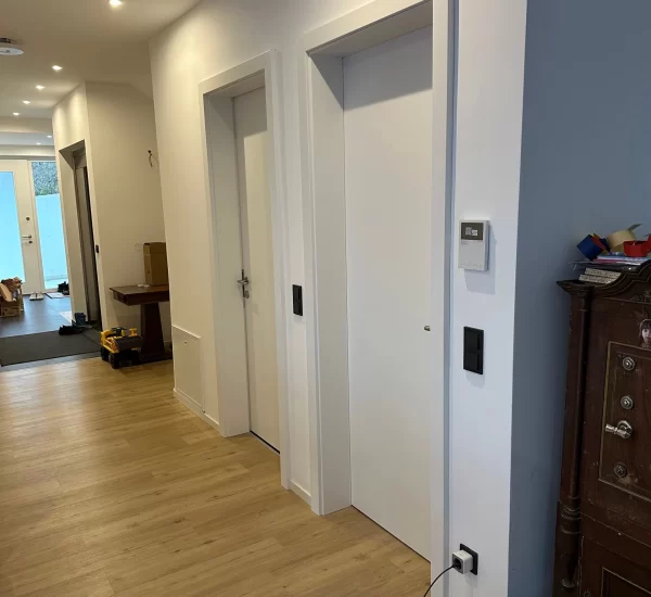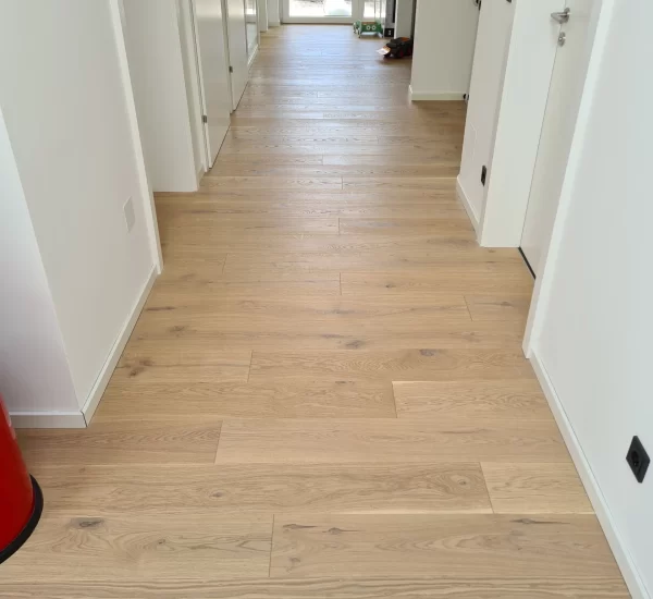 Die Fußbodenheizung sorgt für eine gleichmäßige Wärmeverteilung in allen Räumen, erhöht den Wohnkomfort und unterstützt die effiziente Arbeitsweise der Wärmepumpe. Alle Heizkreise wurden zonenweise regelbar installiert, um individuelle Temperatureinstellungen zu ermöglichen.