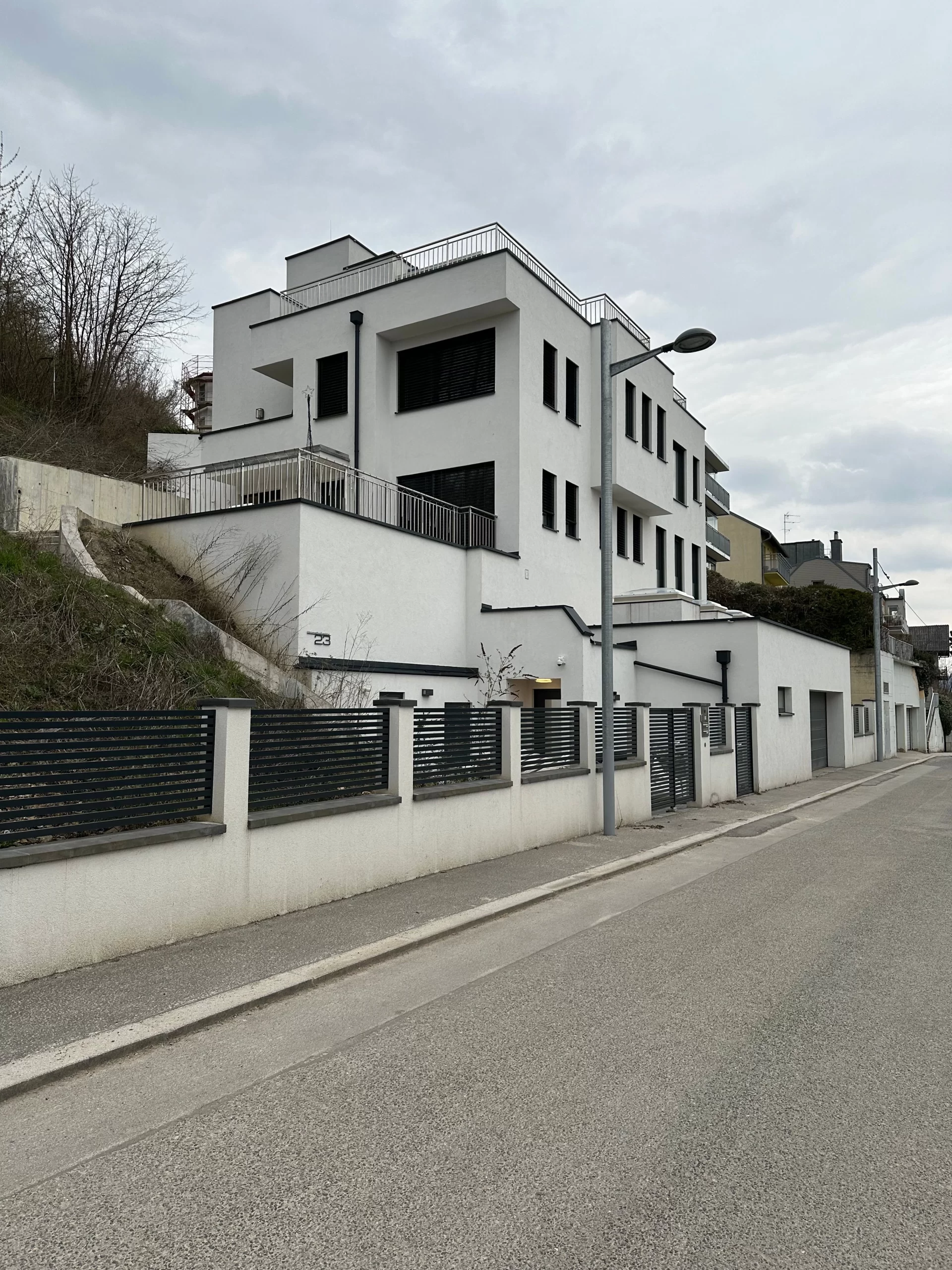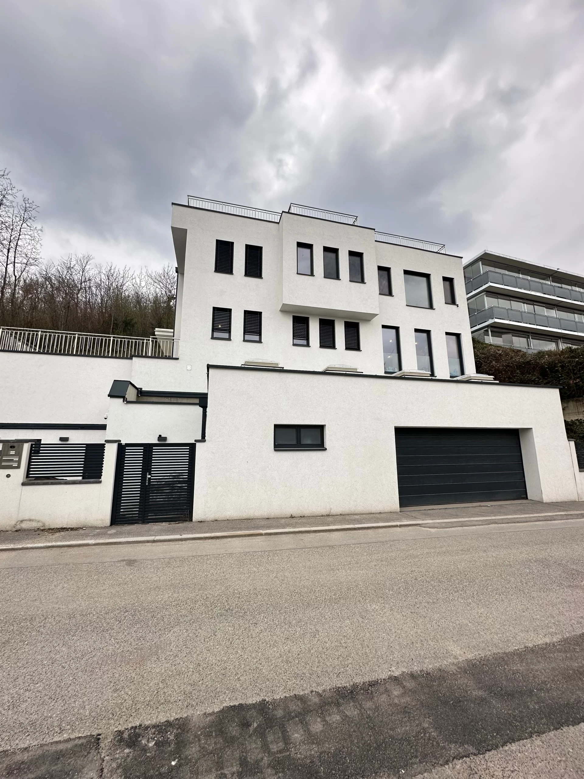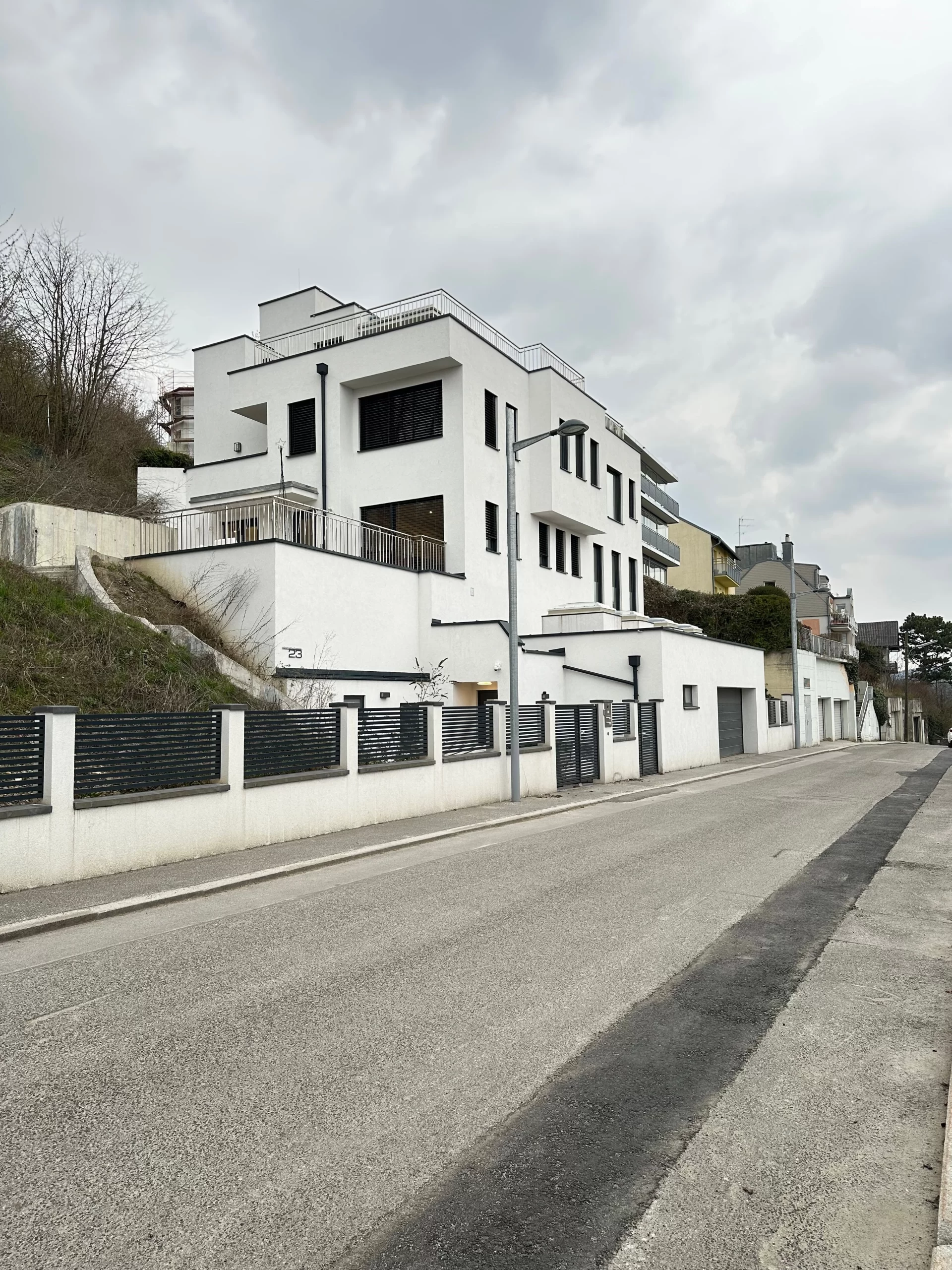Dank sorgfältiger Vermessung, ingenieurtechnischer Expertise und enger Zusammenarbeit mit Fachplanern konnte eine sichere und wirtschaftliche Lösung für die Hangbebauung gefunden werden. Die Architektur wurde gezielt auf die topografischen Gegebenheiten abgestimmt – mit Terrassierung, versetzten Ebenen und optimaler Raumausnutzung.