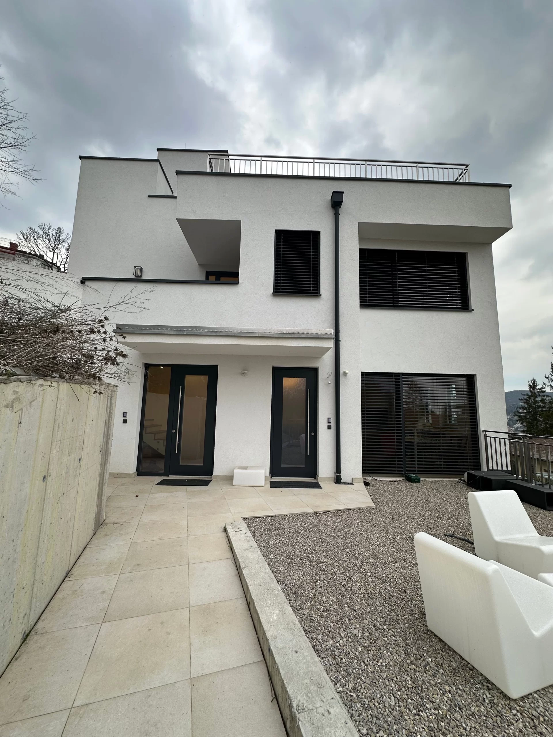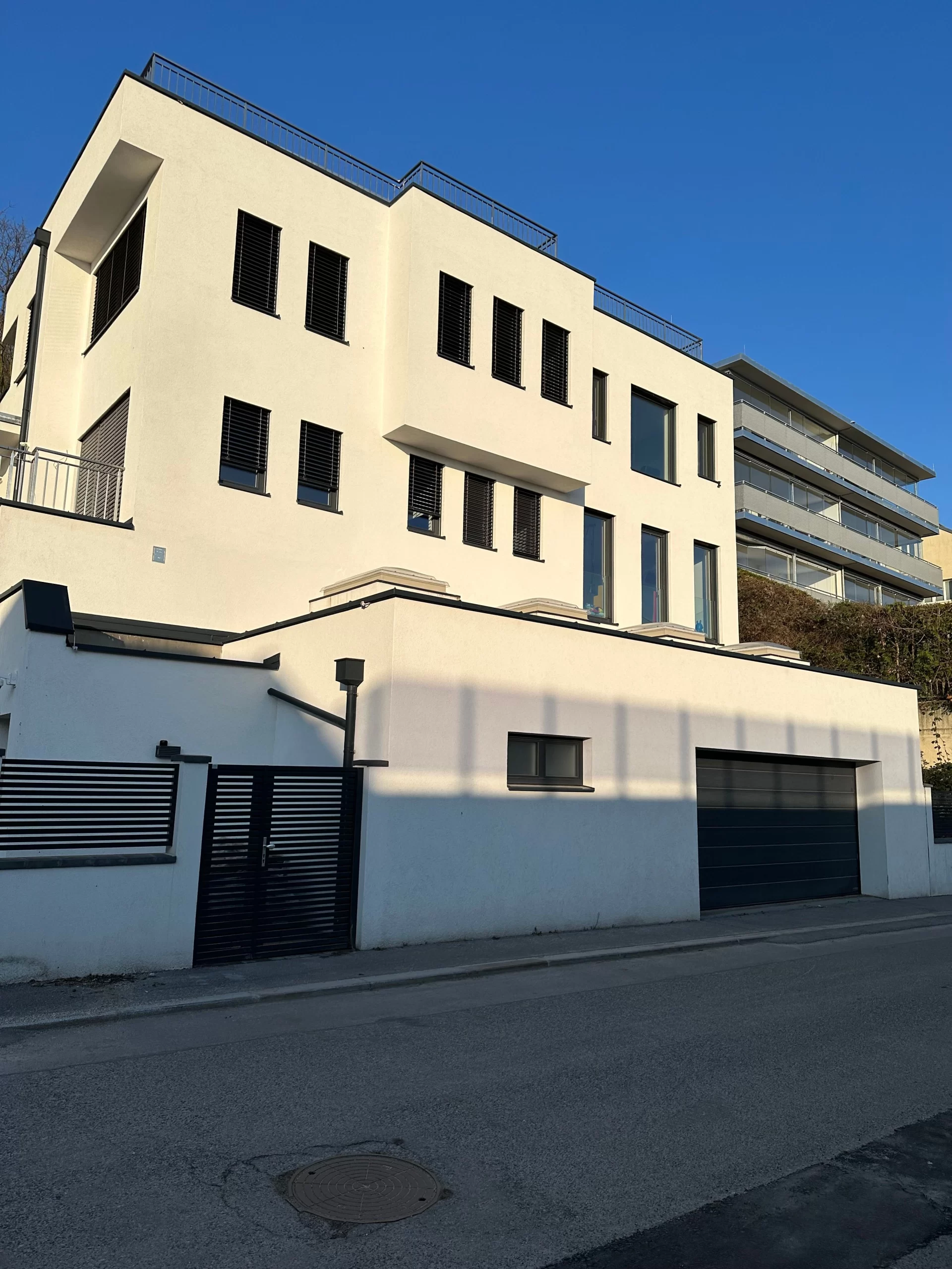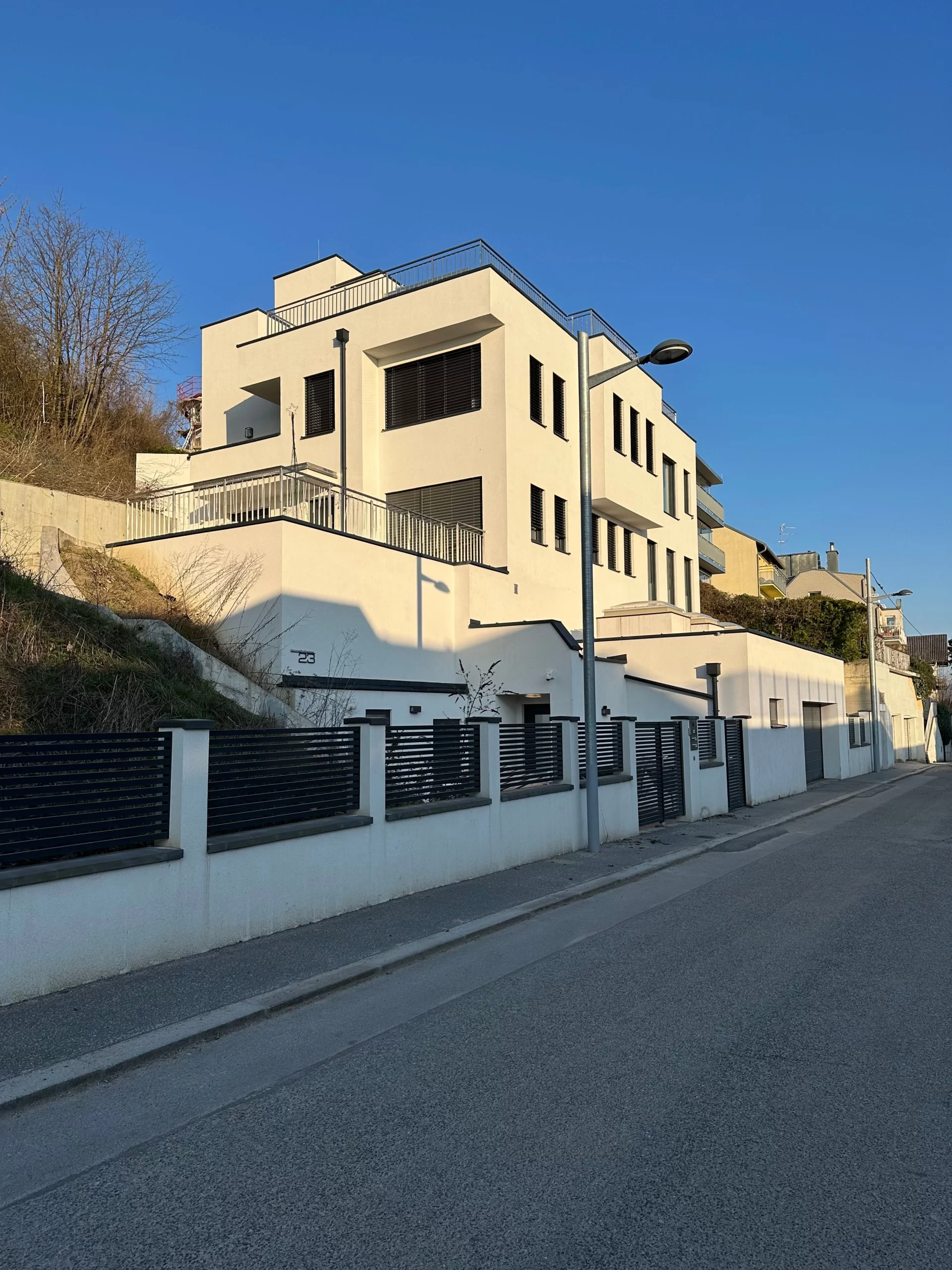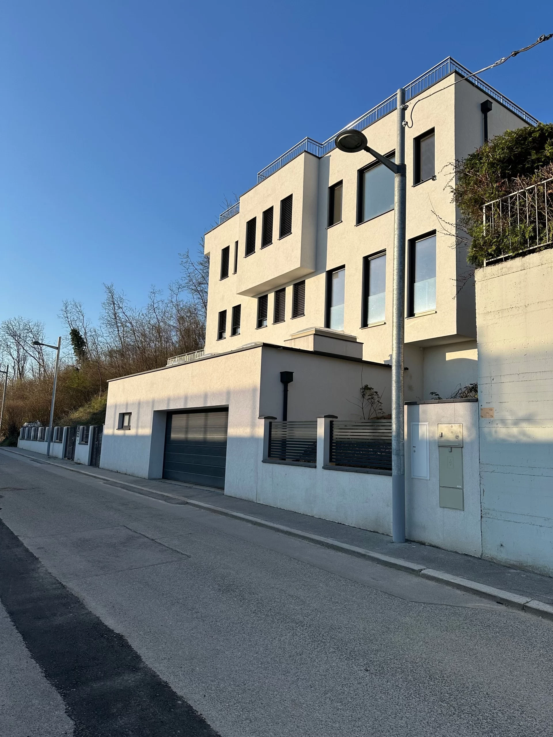 Dank sorgfältiger Vermessung, ingenieurtechnischer Expertise und enger Zusammenarbeit mit Fachplanern konnte eine sichere und wirtschaftliche Lösung für die Hangbebauung gefunden werden. Die Architektur wurde gezielt auf die topografischen Gegebenheiten abgestimmt – mit Terrassierung, versetzten Ebenen und optimaler Raumausnutzung.