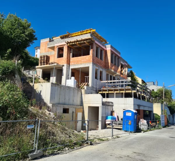 Neubau eines Mehrfamilienhauses als Niedrigenergiehaus in steiler Hanglage und in relativ schwierigen Gegebenheiten.