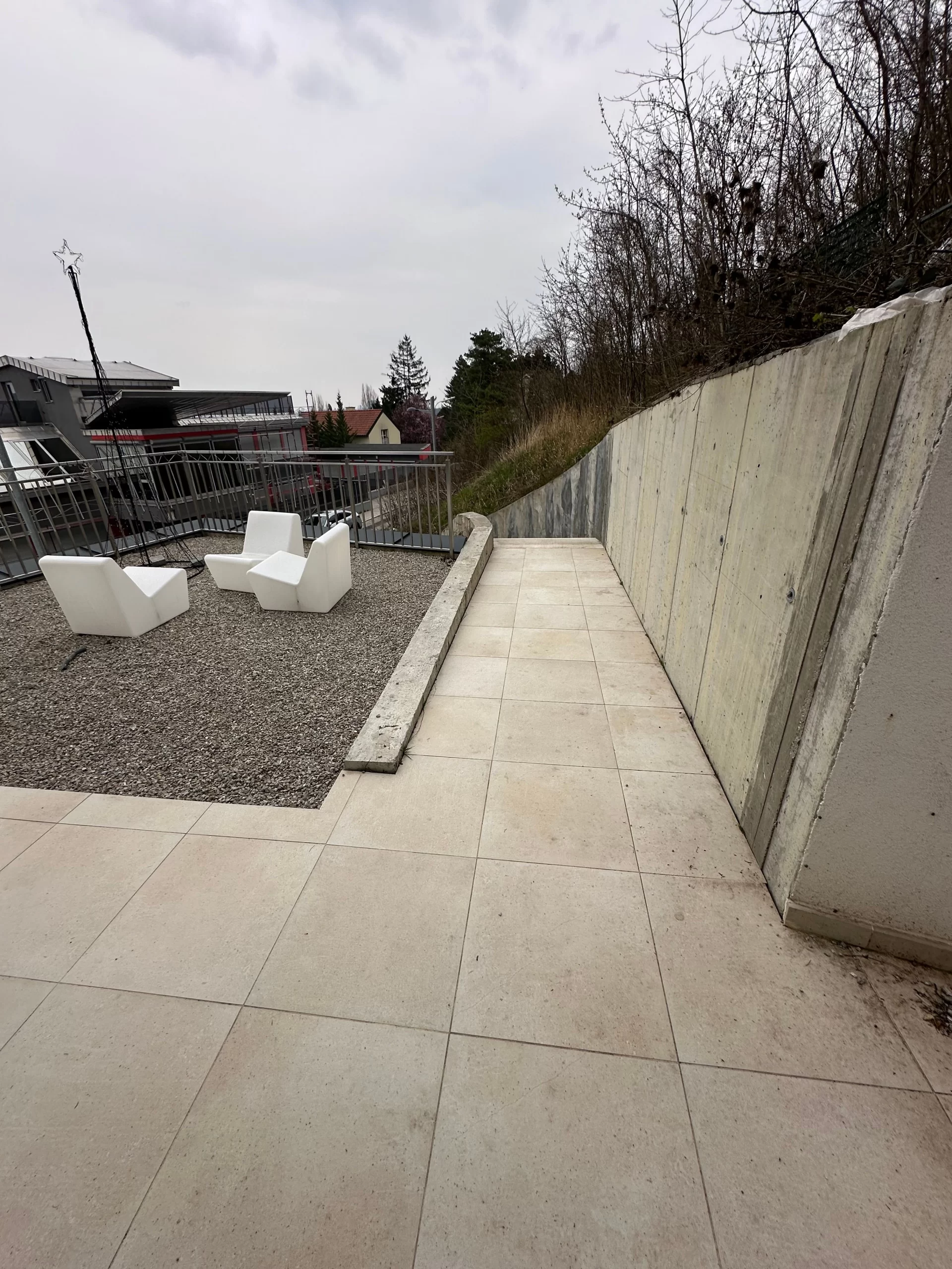 Die Gestaltung der Außenanlage war ein wichtiger Bestandteil des Gesamtprojekts. In enger Abstimmung mit Landschaftsarchitekten wurden funktionale und ästhetisch ansprechende Außenbereiche realisiert: